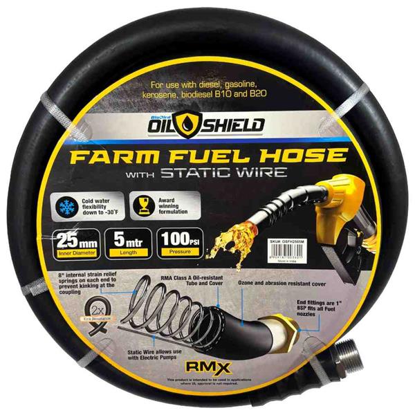 1" BSP fittingsContains a static wire for use with electric pumps 8" internal strain relief springs to avoid kinking at the couplingsRMA class oil resistant tube and cover