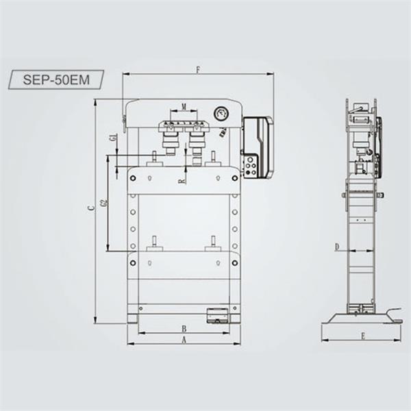 An energy efficient 2 speed ram shop press with a 50 Ton capacity with a foot pedal operation for hands free operation featuring an Led light for better visibility in darker conditions and industrial seals for better sealing performance.