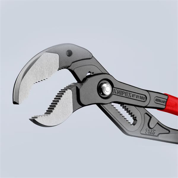 Self-Locking: Jaw geometry allows the tool to lock onto pipes and nuts, requiring no handle squeezing once engaged.
