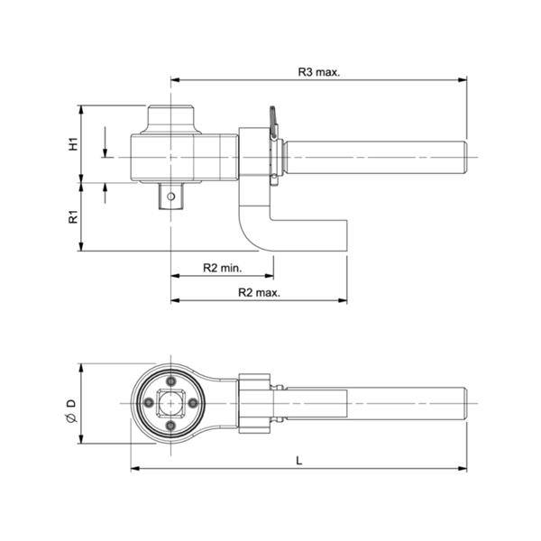 The range encompasses a maximum output torque of 2,700 N·m. It is imperative to consistently employ a torque wrench (both clockwise and anticlockwise) to prevent surpassing the multiplier's maximum torque capacity.